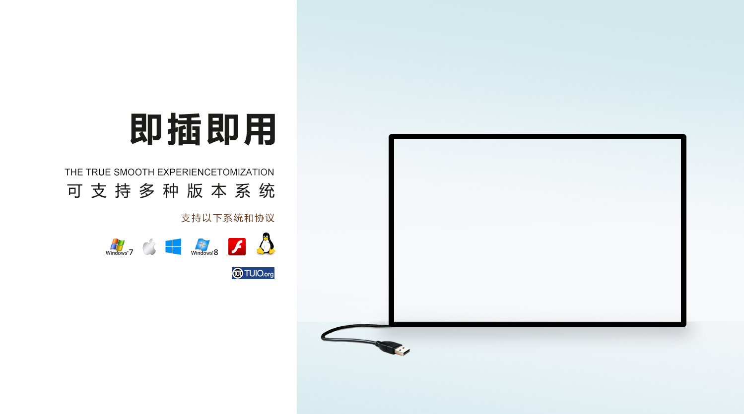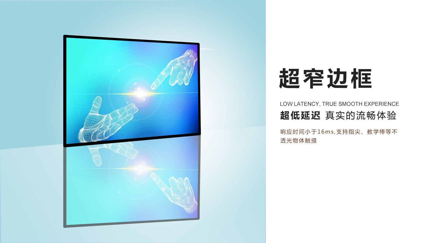 自主研发的红外多点触摸屏,拥有多项红外多点触摸领域的发明专利、实用新型专利产和软件著作权,产品通过CE、FCC和Rohs认证。